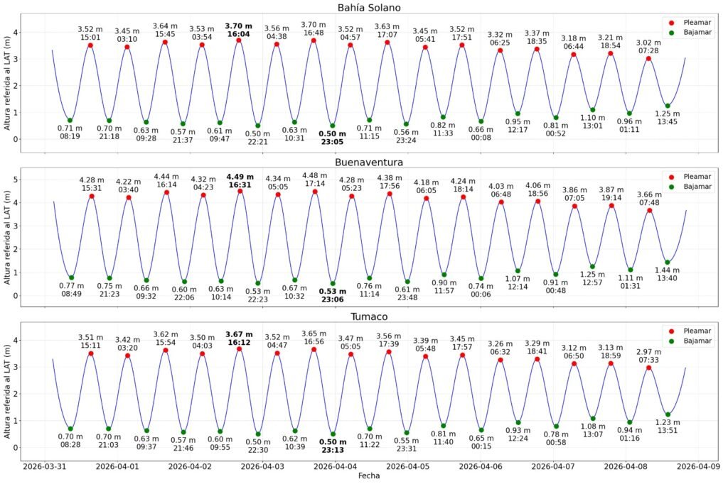 En un comunicado, la Dirección General Marítima, DIMAR, alertó a las comunidades costeras de los departamentos de Cauca, Chocó, Nariño y Valle del Cauca, por un incremento en el nivel del mar en el Pacífico colombiano, el cual se prevé entre el 31 de marzo y el 9 de abril de 2026.
