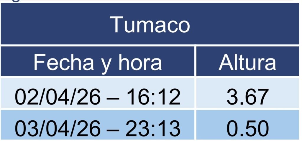 -Tumaco: hasta 3,67 m (04:12 p.m.).
