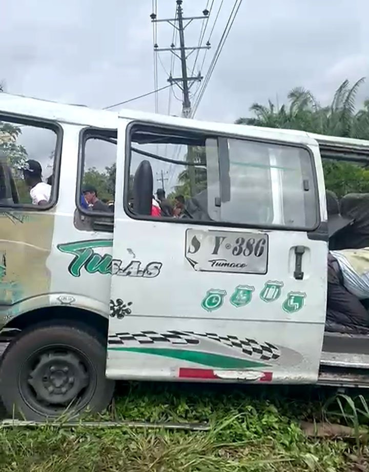 Al parecer, luego de las 10:05 de la mañana, un vehículo tipo camión y un microbús de la empresa Tumaqueña S.A.S., de placa S-Y 386, chocaron de manera violenta.