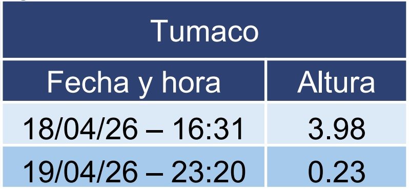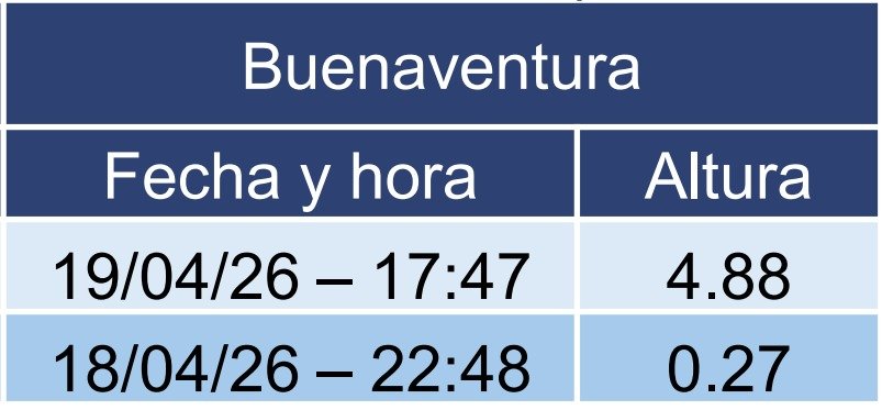 – Tumaco: hasta 3.98 m (18/04/2026 04:31 p.m.).