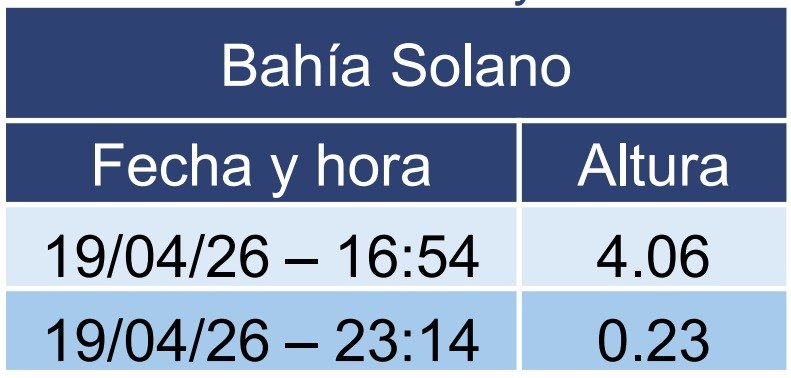 -Bahía Solano: hasta 4.06 m (19/04/2026 04:54 p.m.).