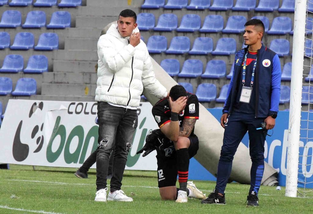 Polémica por supuesta falta de Andrés Cabezas, arquero de D. Pasto, a continuación secuencia de la acción.